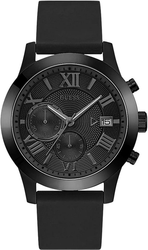 Guess Atlas Men S Chronograph Watch With Silicone Strap Black Black W1055g1 Amazon De Uhren